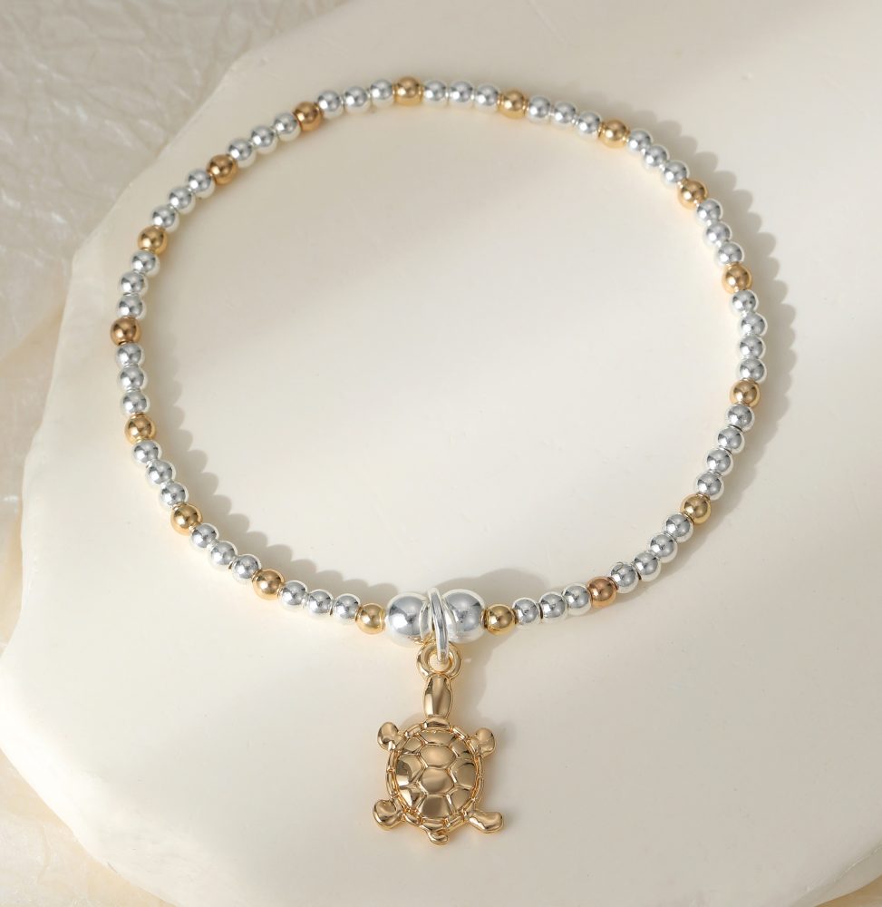 Silver and gold stretchy bracelet with gorgeous turtle charm