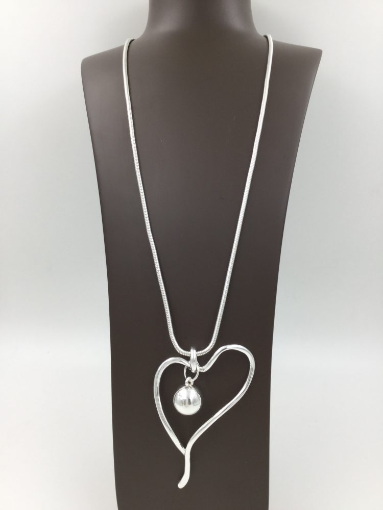 / 284 Silver Long Heart Necklace
