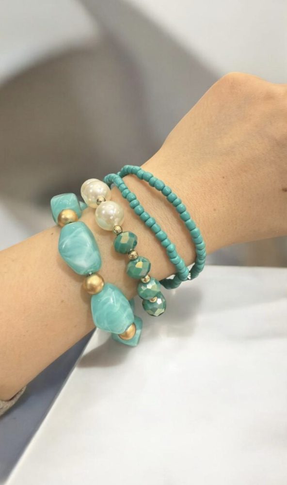/ 989 Set of Four Turquoise Beaded Bracelets