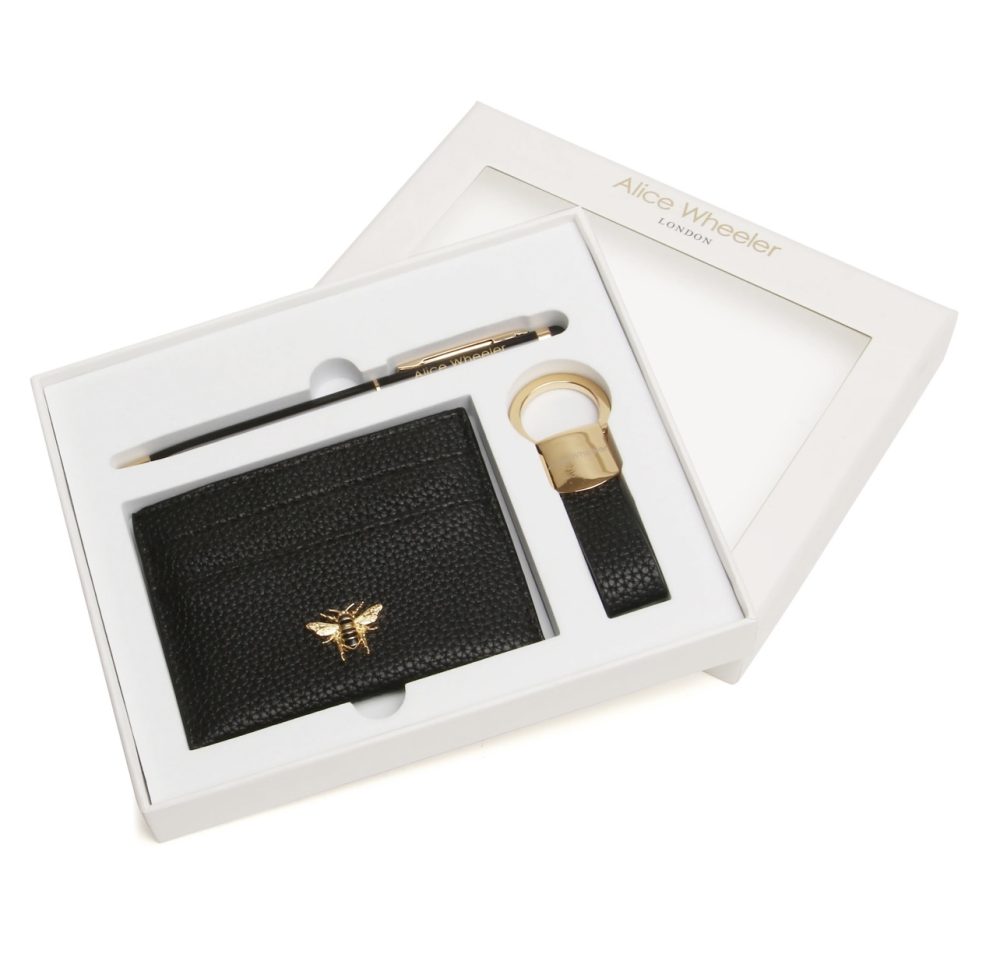 Alice Wheeler London Luxury 3-Piece Gift Set: Bow Card Holder, Loop Keyring & Pen