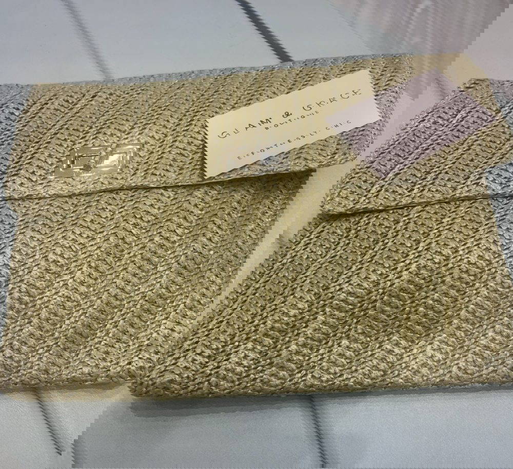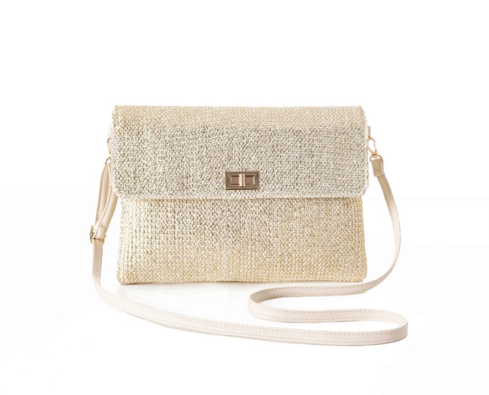 Gold or Natural Clutch bag with shoulder strap