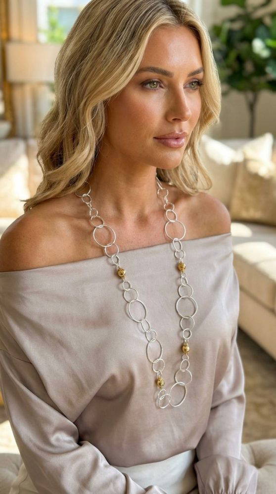 Envy 4772 Long Loose Chain Necklace in Gold & Silver