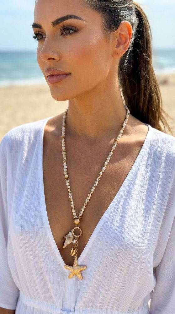 / Envy 4812 Long Beaded Necklace with Starfish Pendant