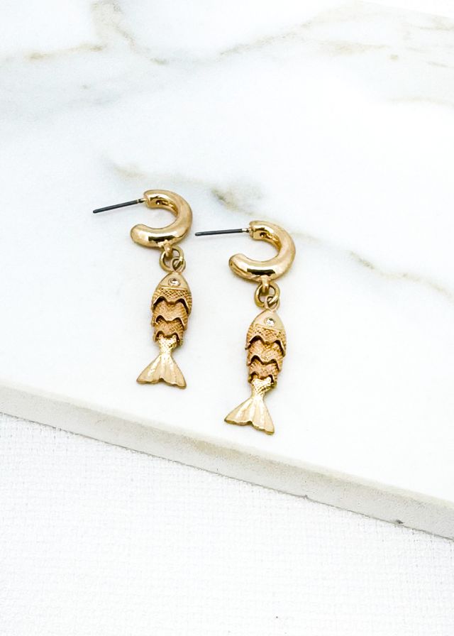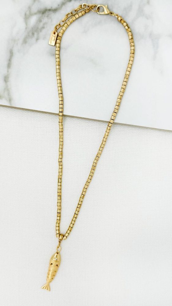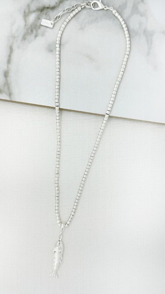 Envy 4880 Short Necklace with Fish Drop in Gold & Silver