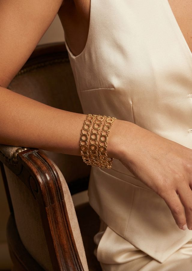 Wide circle and chain bracelet in gold and silver