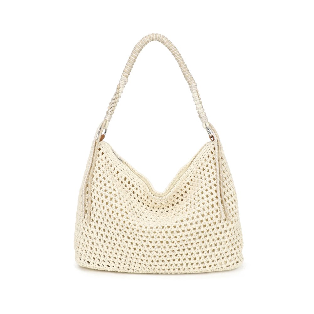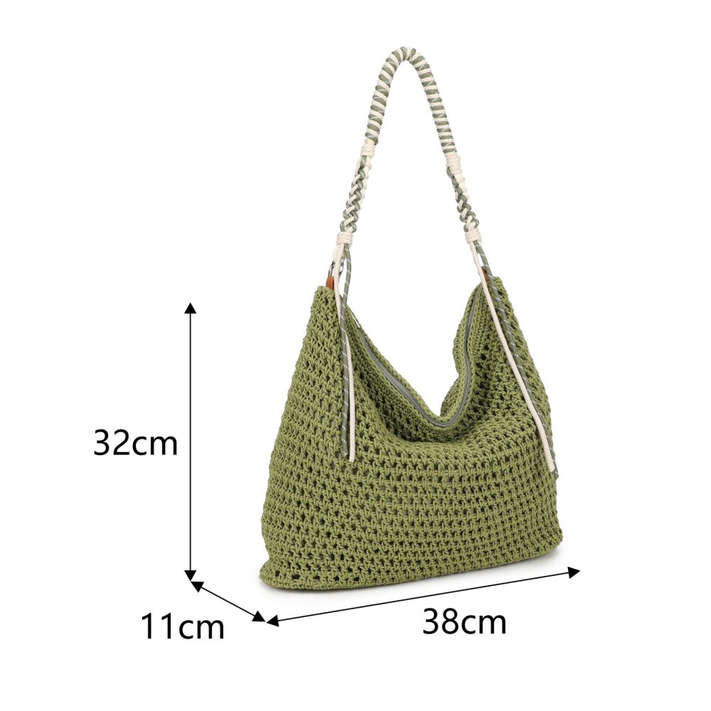 Lovely crochet shoulder bag with zipper closure to the top