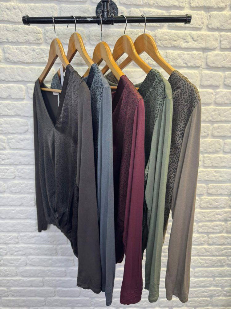 V neck top with animal print and long sleeves