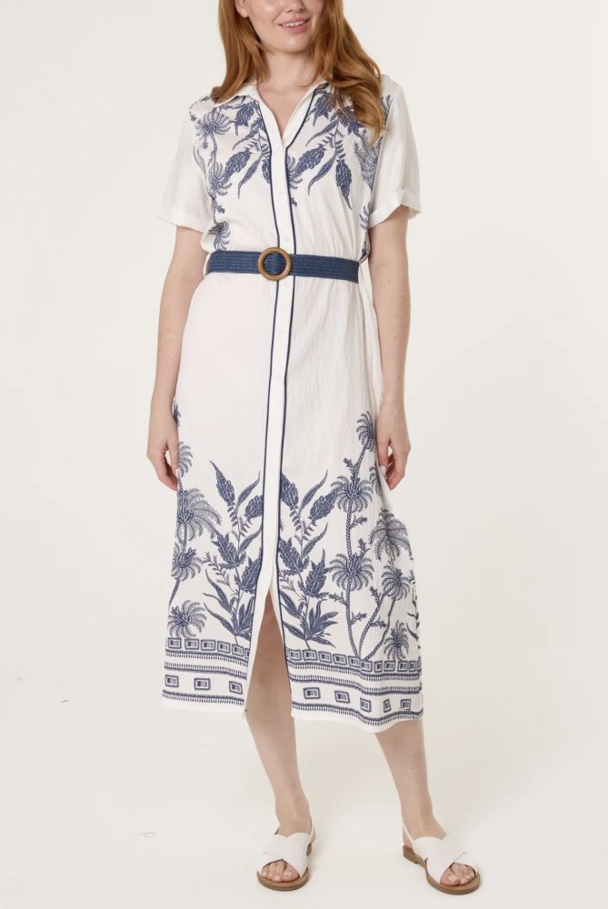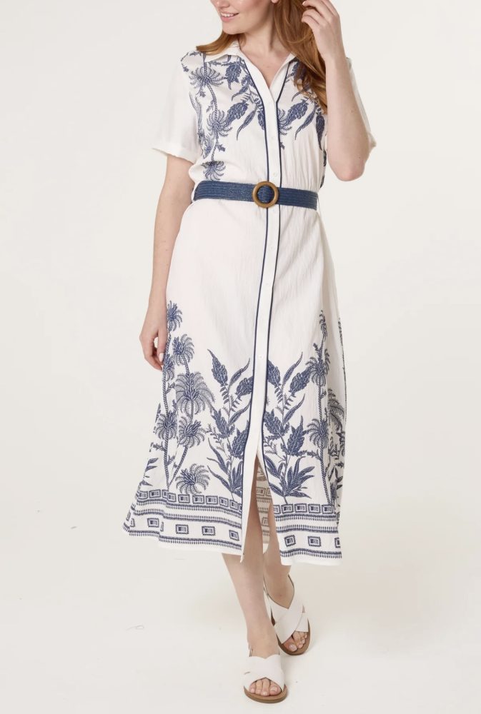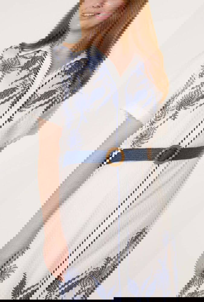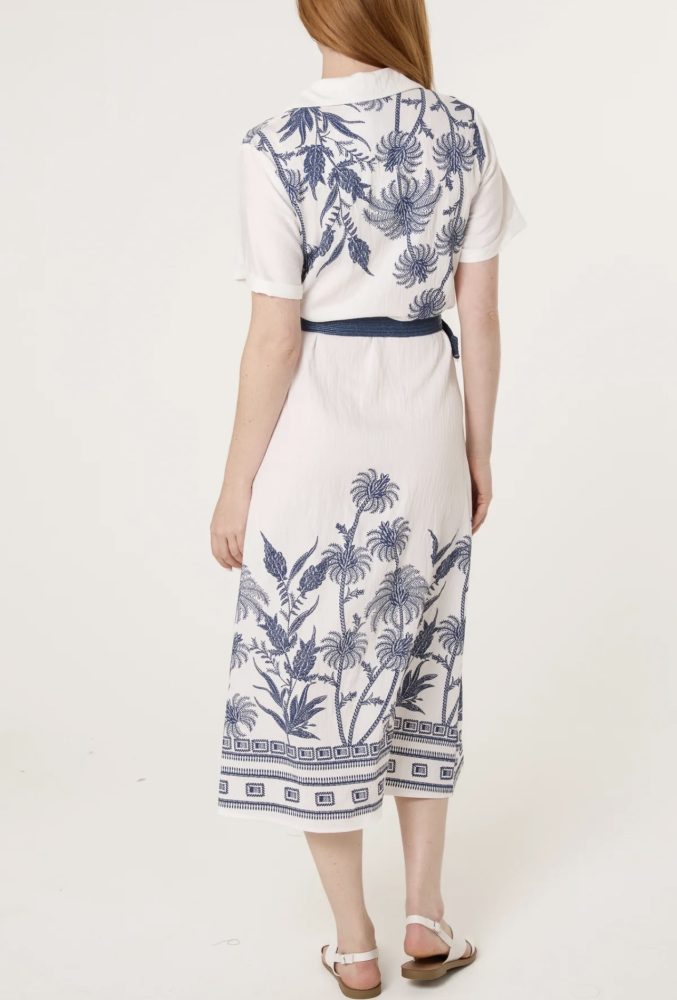 Beautifully embroidered dress with buttons to front, short sleeves and a belt