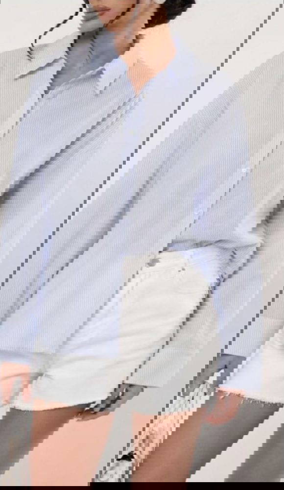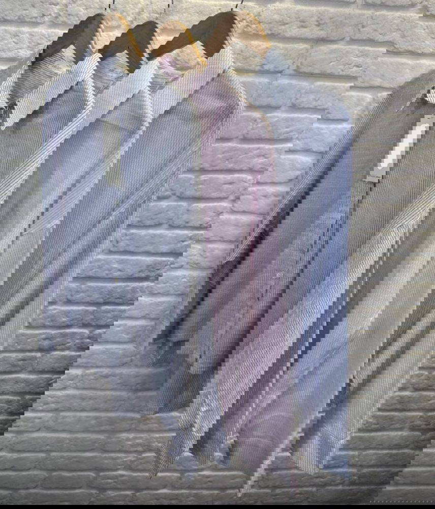 Sift stripe shirt with collar, long sleeves and cuff.