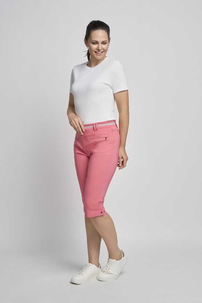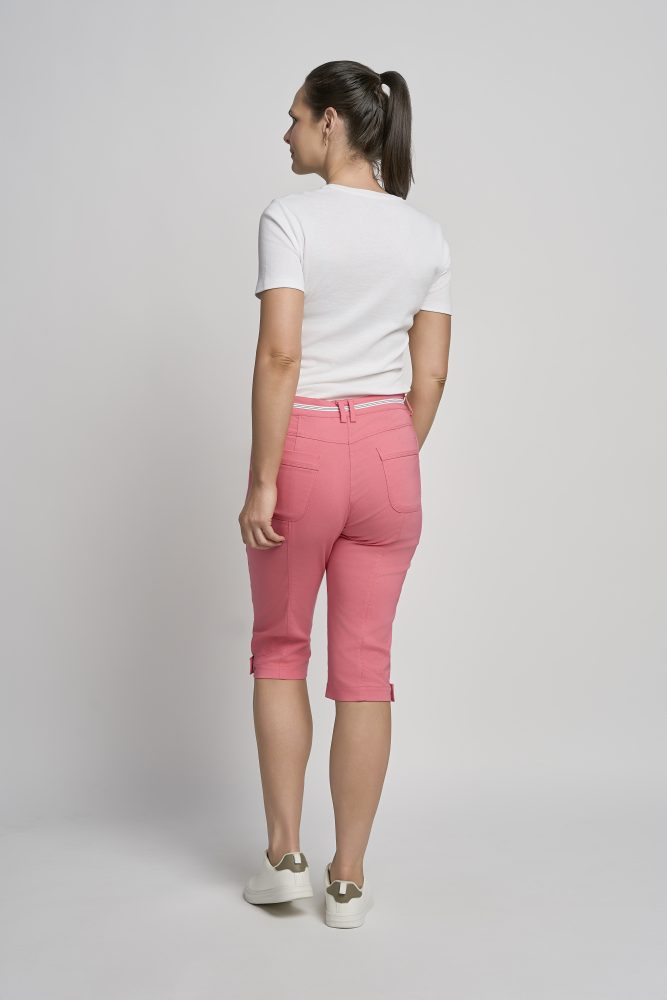 Sunkist coral bengaline bermuda shorts with waist fastening and hem feature