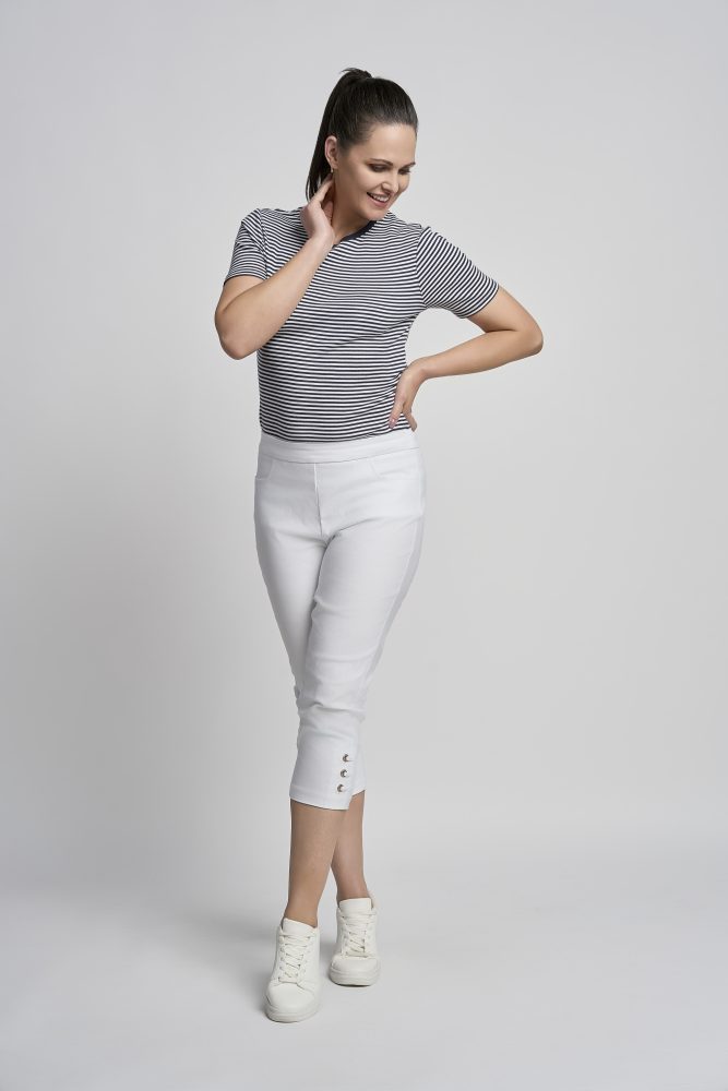 Figure sculpting heavy weight bengaline crop trousers with hidden tummy control and diamond detail eyelets at hem.