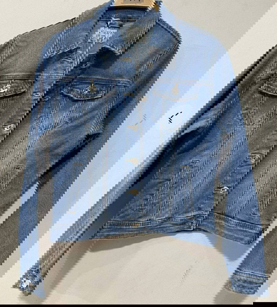Gorgeous new stylish denim jacket in a medium wash denim colour. Button front fastening and vintage wash.