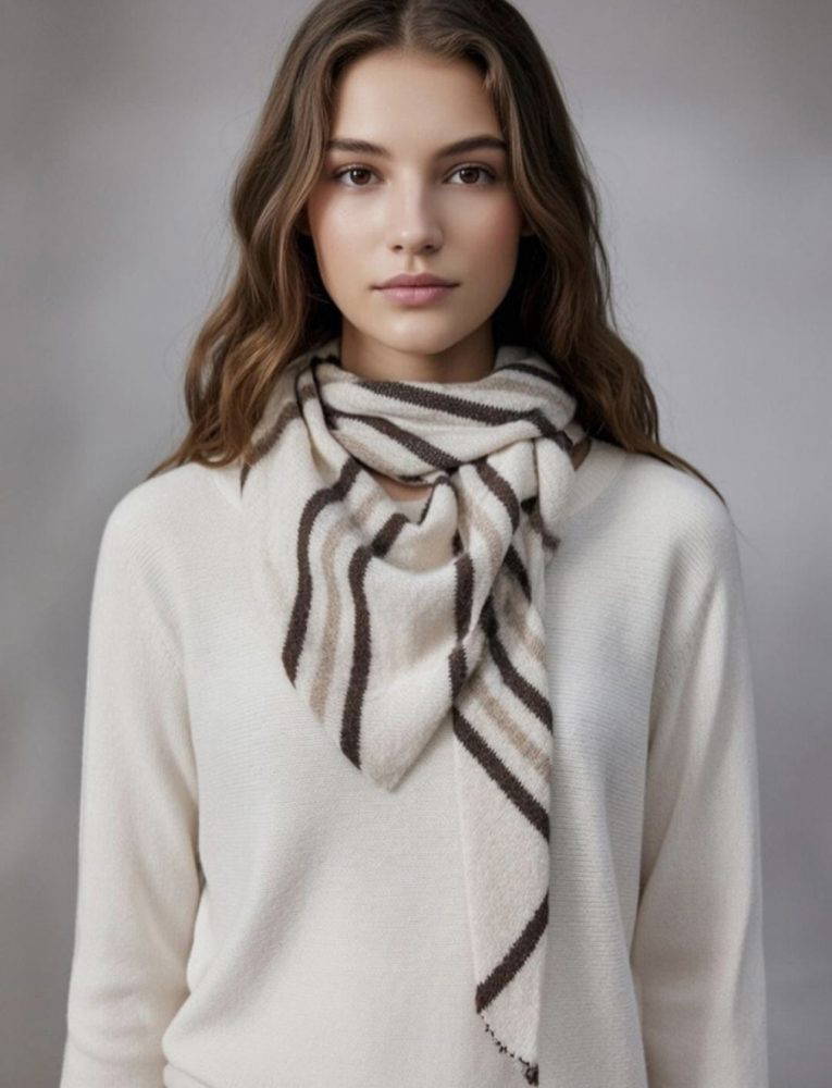 Beautiful stripe knitted triangle scarves in three colourways.
