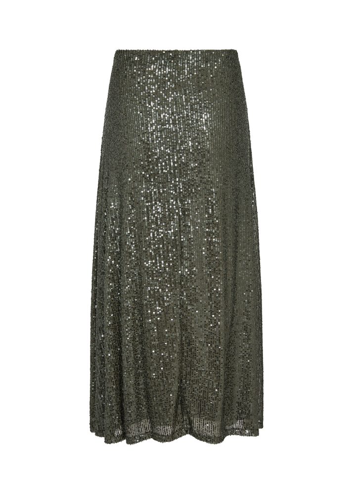 SC-Nanett 3 is an elegant skirt made from 100% recycled polyester. The skirt has a high waist, a maxi length and a nice sequin material. Style it with a blouse and some heels for a beautiful look.